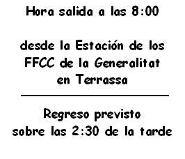 Notes: * Pressupost: 4 € (billets d’anada i tornada en tren) + 4 € (entrada al Museu d’Història). * Vocals: Àngela Comellas, Rosa Rodríguez, Carme Reig, i Francesc J. Suárez. * Els desplaçaments es faran en tren. * L’entrada al Museu es farà per grups de 20 persones. * Més informació i inscripcions al 609.403.750 (de 18 a 21 h). - Data límit per inscripcións: 27 de gener. És tancarà l’inscripció en cas d’arribar als 40 participants. |