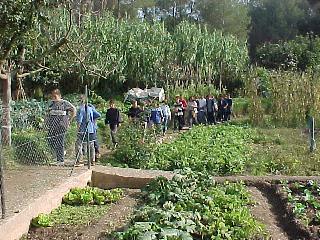 Siguiendo el camino que atraviesa la plana se baja hasta la zona de los huertos donde podemos encontrar la tierra con la rotulación característica de este tipo de cultivo.