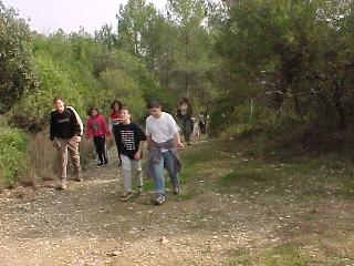 Se sale de los huertos y se asciende en dirección al antiguo núcleo de la Tarumba. Nos encontramos con el "Camí de Sacrament" que va desde la casa de can Purull a la iglesia de Sant Martí de Sorbet. Aquí se puede observar el cambio del terreno que ahora esta compuesto de guijarros de aluvión. |
