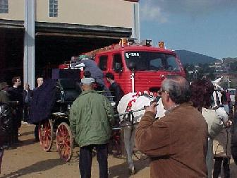 Después del almuerzo se coloca el altar en el carruaje que llevara la figura del santo durante el recorrido.